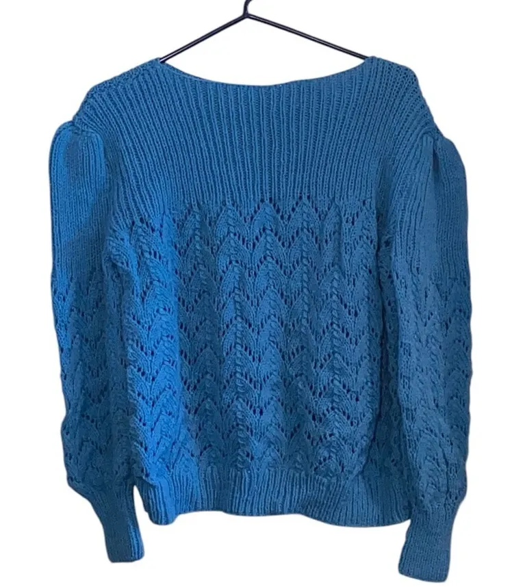vintage hand knitted open weave blue sweater this sweater has pretty details . the design of the ope... Show more