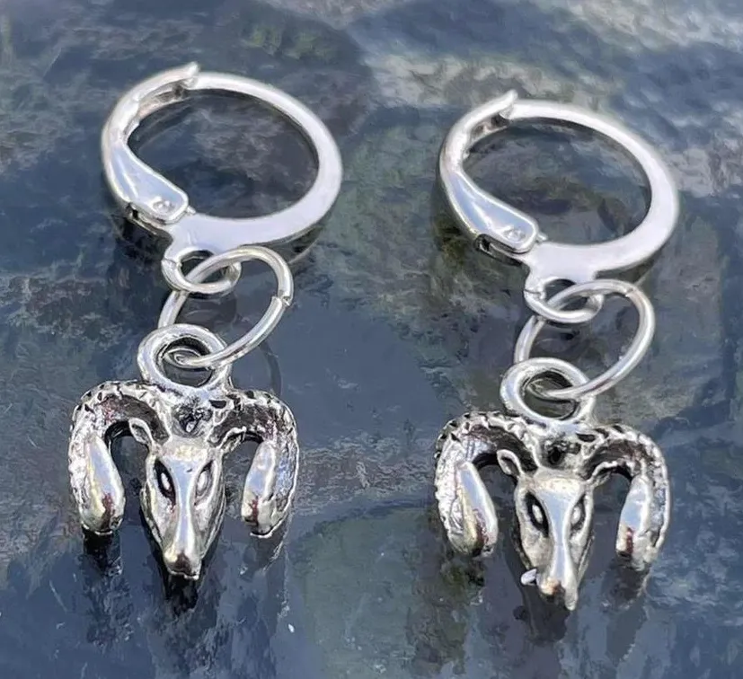 Y2K Silver Goats Hoop Earrings , Gothic Punk key Goat hoops earrings , grunge Emo rock jewelry, Alternative Skater accessories — Goats pendants - Tribal fashion hip hop halloween - Brand New ! Ideal for anyone who wants something simple that stands out ! #grunge #emo #punk #gothic #earrings