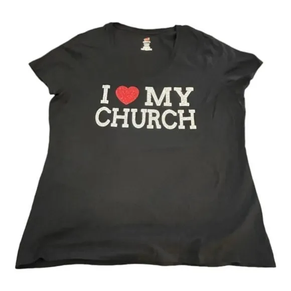 I LOVE MY CHURCH Black Graphic Shirt Size XL EUC #2462 - $26 - From Vir