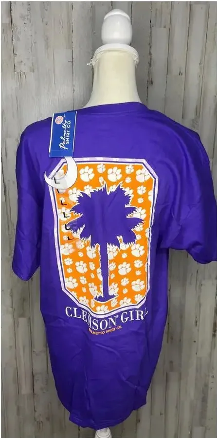 NWT Clemson Tigers Women's Large Purple Paw Palm Tree "Clemson Girl" T-Shirt All orders ship next b... Show more