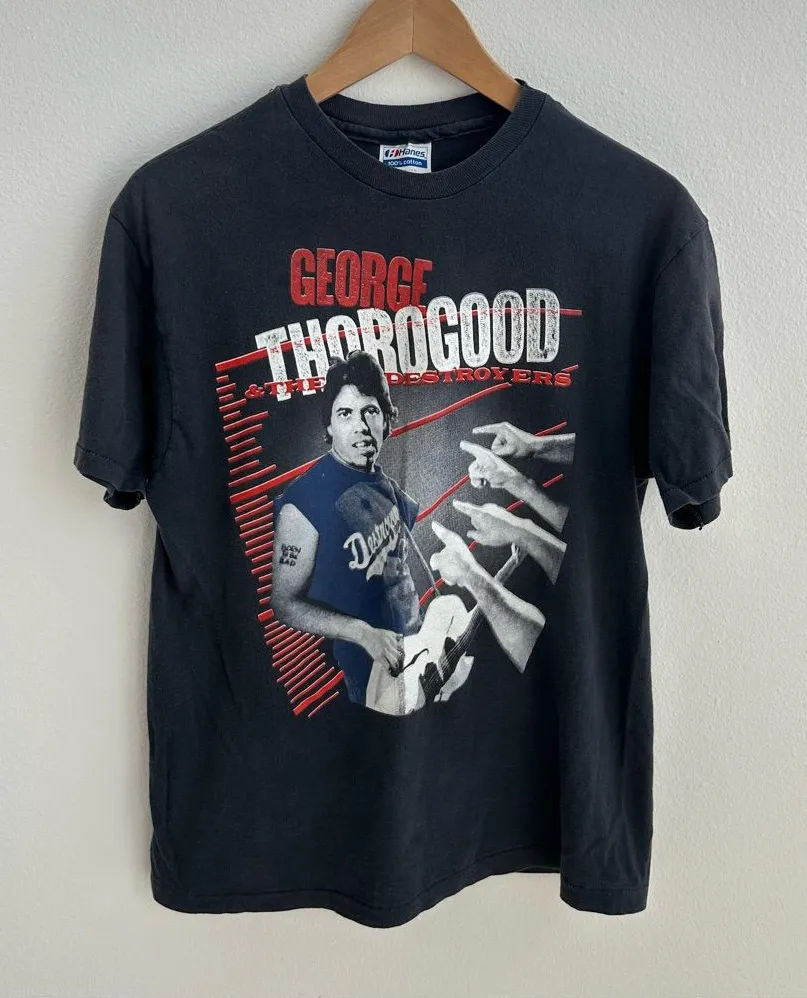 soft hand feel knit fabric with nicely worn down washed look.....looks cool! graphic on front and ba... Show more