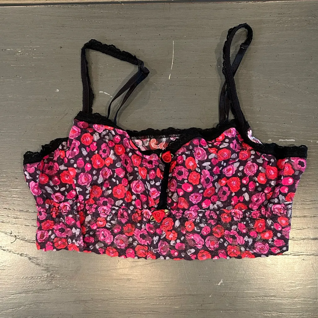 Hanky Panky Pink & Red Floral Roses Lace Bralette Size M - $35 - From Tru