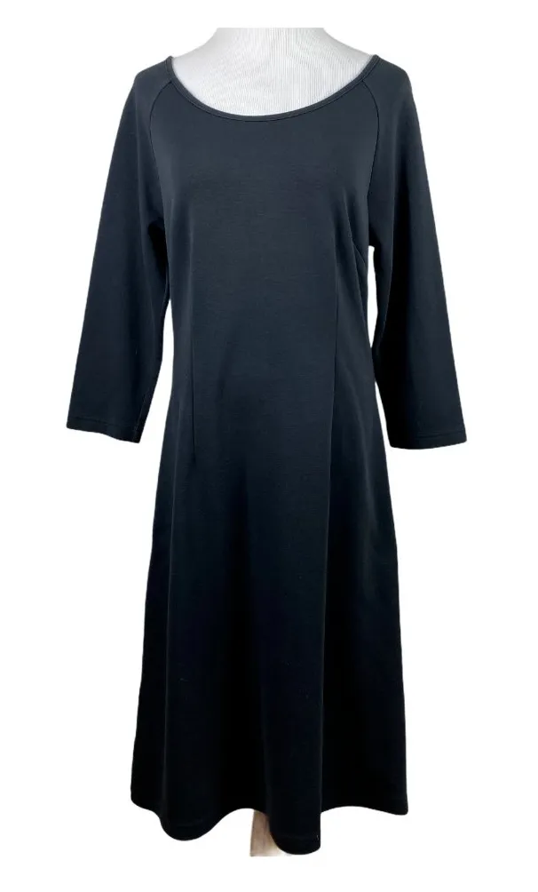 Hanna Anderson Dress M Black Sheath A-Line Knit Stretch Flattering Seams 3/4 Women's Medium Very go... Show more