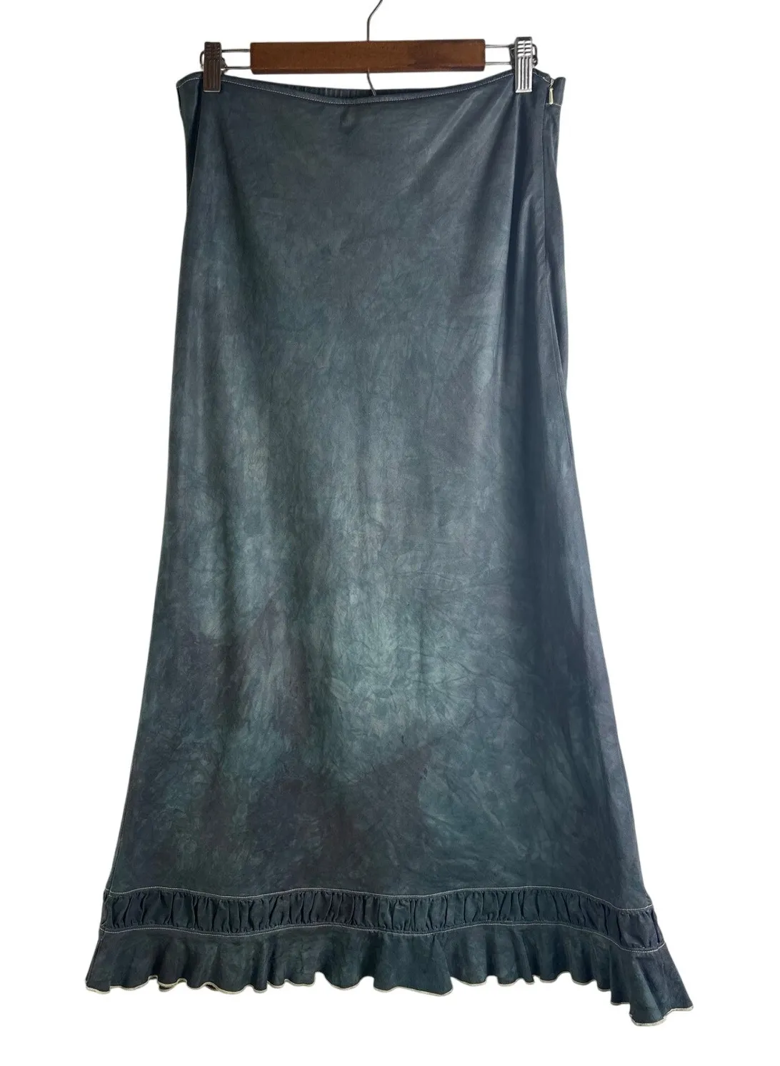 Hanna Andersson Maxi skirt featuring a unique Subtle green tie-dye pattern. This skirt boasts a comfortable elastic waistband with an interior button and zipper closure for a secure fit. The design is completed with a charming ruffle hem, adding a touch of sophistication to the overall look. Can be worn for numerous occasions and can be dressed up or dressed down. Could have a western look too. The skirt measures approximately 36" long. It is in excellent preowned condition with no flaws to note. Keywords: Hanna Andersson, maxi skirt, long skirt, tie dye, ruffle hem, elastic waist, cotton blend, womens skirt, size 8, bohemian, boho, casual skirt, green, western, festival, date, classic, comfortable. *From a smoke free home *Shipping next business day