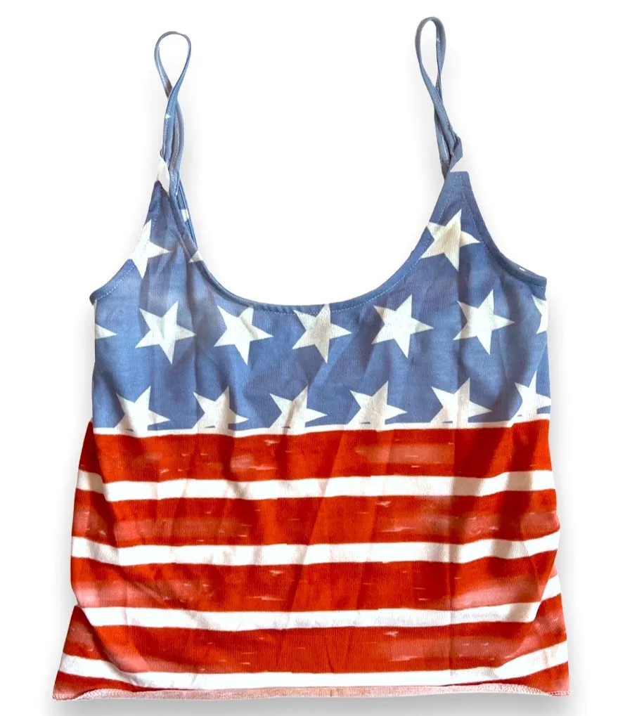 🪩4/$20!! 4th of July Stars and Stripes Tank Top Crop Top Small 🪩4/$20!! Red - $11 - From Katie
