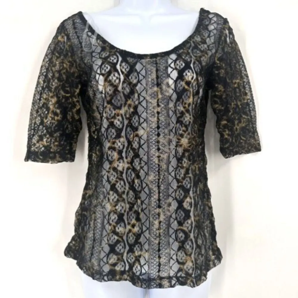 NWT H.I.P Happening in the Present Women's Sheer Lace Top Black Gold Medium Brand: H.I.P Happening... Show more