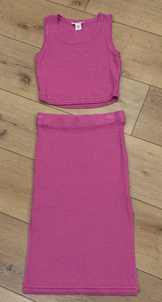 Chic matching 2-piece set by Happily Grey in a vibrant pink knit. Includes a sleeveless cropped tank top and coordinating pull-on midi skirt. Skirt has side slits. Soft textured knit with stretch for a flattering, body-skimming fit. Wear together or style separately. This set is sold out / discontinued, making it a great find. Details • Brand: Happily Grey • Size: L (both pieces) • Color: Pink / Magenta / Berry • Fabric: Textured knit • Top: Sleeveless, scoop neckline, cropped length • Skirt: Elastic waist, midi length • Condition: excellent preowned condition ✨ Perfect for casual chic, vacation, brunch, or elevated lounge looks. coquette, barbiecore, soft girl, clean girl, quiet luxury, minimalist, capsule wardrobe, elevated basics, modern chic, knitwear, matching set, vacation outfit, resort wear, summer set, brunch outfit, feminine, trendy, instagram style, contemporary, neutral core, pink aesthetic, baddie