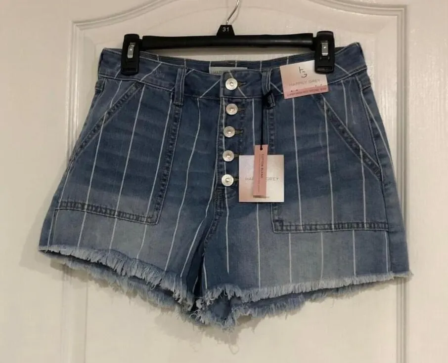 Happily Grey Womens Denim Shorts Size 9/29 Blue Stripes Super High Rise Wedge Condition: New With... Show more