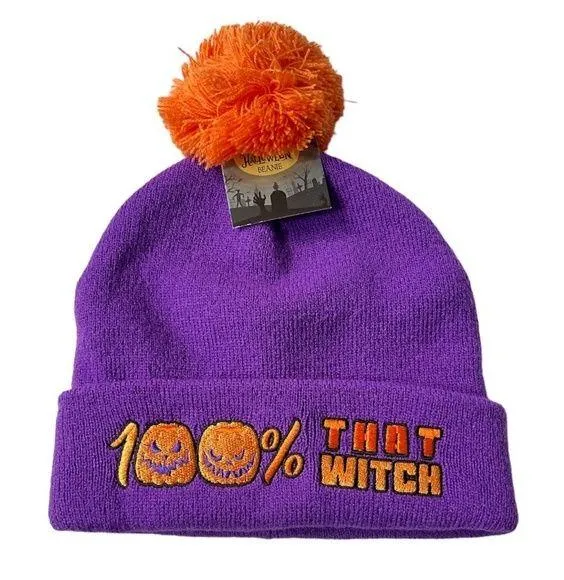 Happy Halloween 100% That Witch Beanie Purple Orange One Size Fits Most - $18 New With Tags - From Shop