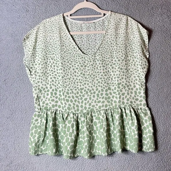 Haptics by Holly Harper Top Womens XS Mint Fresh Short Sleeve Spots Oversized Top NEW Features: Ple... Show more