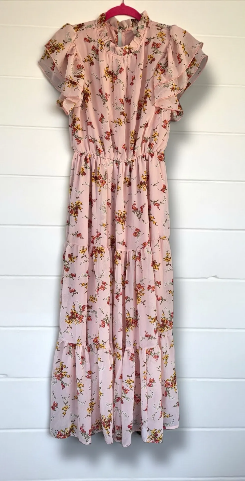 * Excellent Used Condition * Haptics by Holly Harper Womens Large Light Pink Floral Tiered Cottage Maxi Dress * Normal gentle wear. Minor thread/snag on front bottom hem. No other visible rips, tears, or stains. However please make sure to inspect every photo carefully & ask any questions *before* purchasing * Measurements (are approximate): Bust - 18.5” (total of 37”) Length - 52” Waist - 12” (24”) BUT very stretchy/elastic waistband Shoulders - 13” Sleeve Length - 6.5” • 100% Polyester • Made In Mexico, Designed In California • Incredibly Fast Shipping (usually same day or next business day) • Bundle & Save $$$ - Trusted Seller - All Reasonable Offers Welcome - Buy With Confidence #cottagecore #prairiecore #delicate #feminine #coquette * Comes from a completely smoke free & pet friendly environment * Please make sure to know your own personal measurements & compare to garment