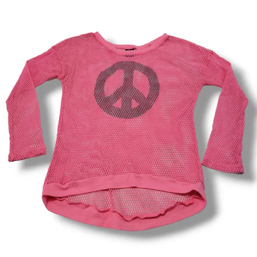 Hard Candy Top Size XL 15-17 Fishnet Shirt Cover Up Top Graphic Peace Logo Pink Women's Top Junior's... Show more