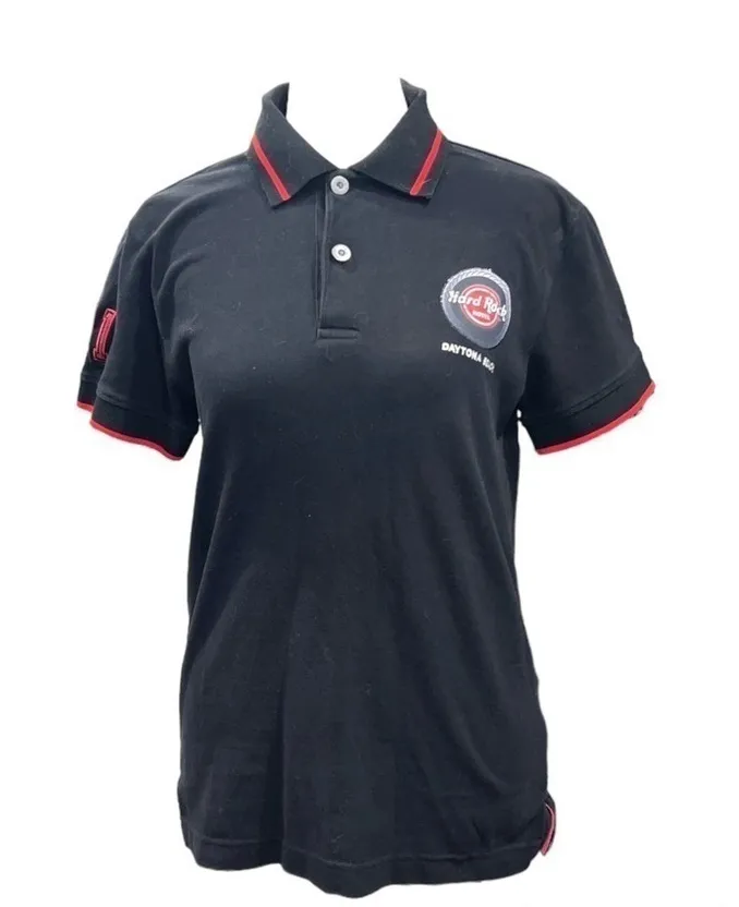 Smoke free home Preowned GUC- no visible rips stains or tears Women's Hard Rock Hotel Daytona Beach Polo Shirt Size Small Measurements taken laying flat: Pit to pit 16.5" Overall length 23.25" Bottom hem (across) 17"