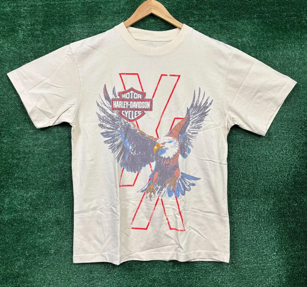 The classic American motorcycle brand Harley Davidson is world-renowned for its grungy graphic tees, tank tops, leather jackets, and sweatshirts— which typically feature skulls, flames, and other timeless motorcycle-inspired designs.
