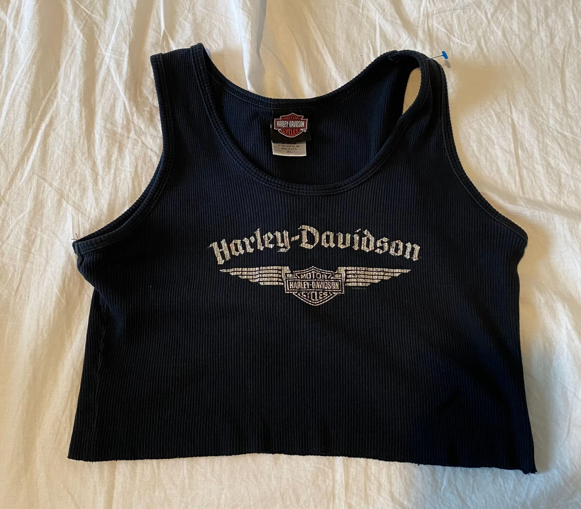 Harley Davison graphic cropped tank Black tank top with a silver logo graphic across the front The... Show more