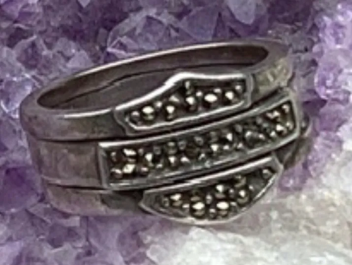 This is an official Harley-Davidson rare sterling silver 925 and Marcasite bar and shield ladies rin... Show more