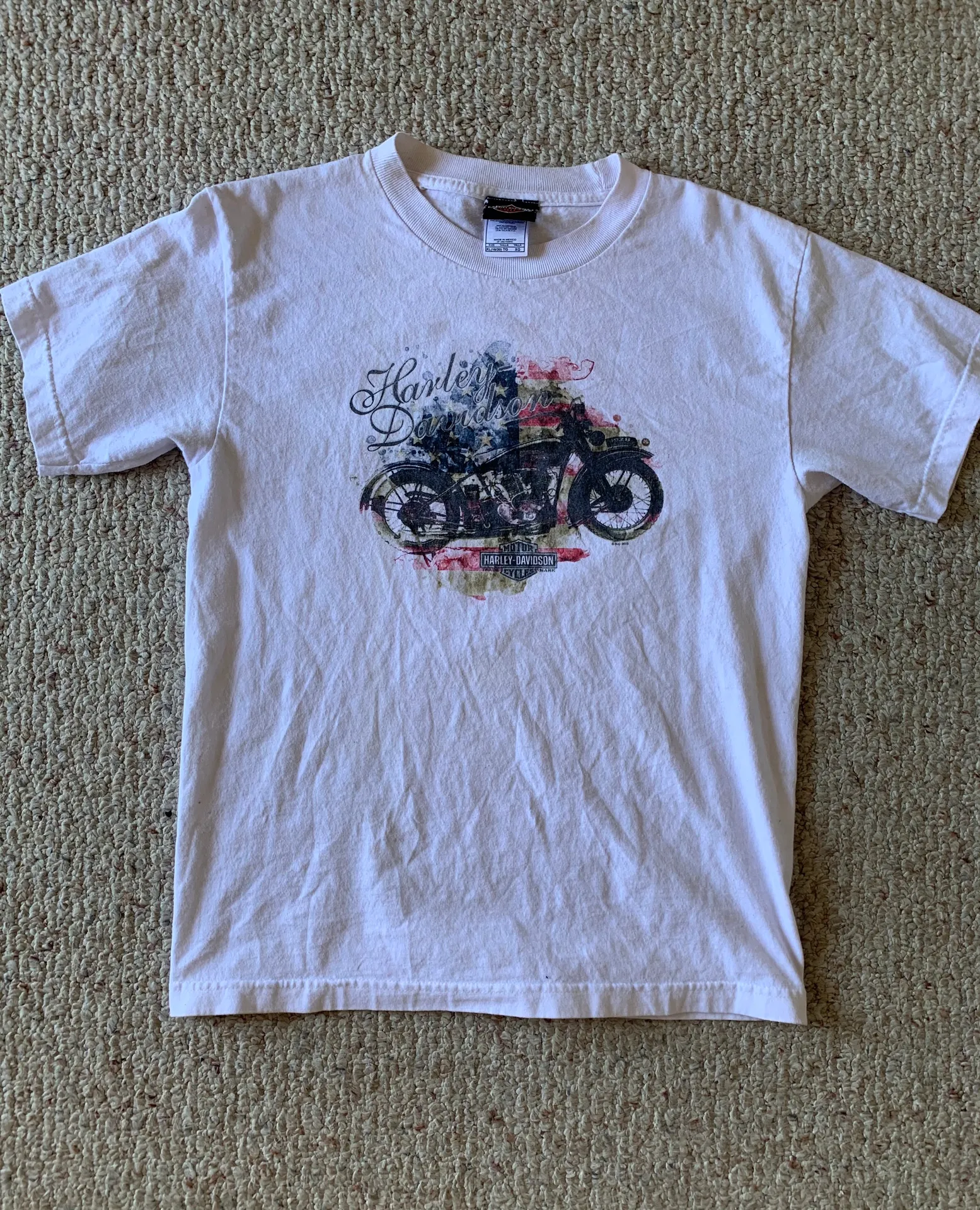 White Harley Davidson shirt. Cotton material, small stain on sleeve