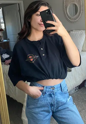 small stain on the bottom corner but not very noticeable! you could cut this tee into a crop top if... Show more
