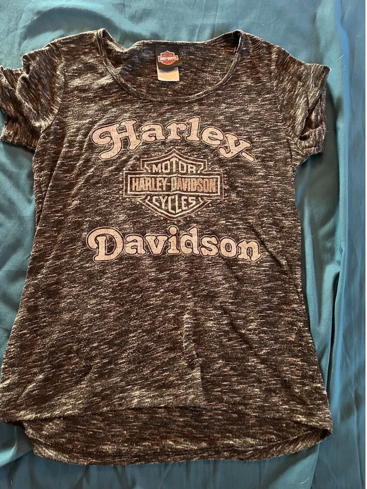 Showcase your love for Harley-Davidson with this women's short sleeve shirt in heathered black. The design features the city of Sandusky, OH and the iconic Harley-Davidson logo. Made in the United States with high-quality materials, this shirt is perfect for any Harley enthusiast. It comes in a size small. Smoke free and pet friendly home. Thanks for shopping by!