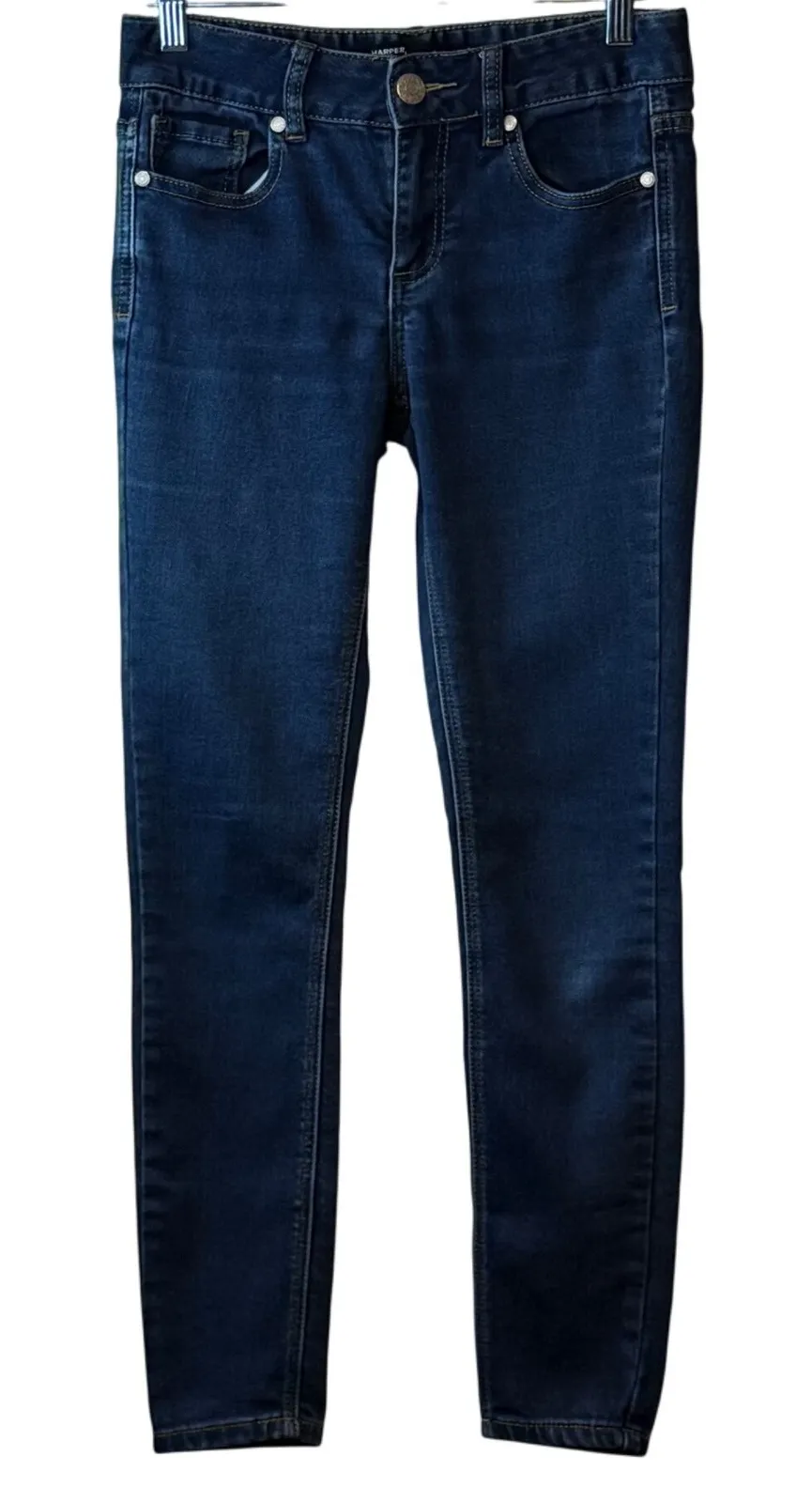 Step out in style with these classic dark wash denim jeans. The design is both casual and stylish, making them a versatile wardrobe staple. With a comfortable fit and timeless appeal, these jeans offer both fashion and functionality. Pair them with a casual t-shirt for everyday wear or dress them up with a blouse for a night out. Perfect for brunch dates, weekend adventures, or running errands. Measurements: • Waist: 14 inches Style: Skinny Department: Women Fabric Wash: Dark Accents: Button Features: Stretch, Comfort Type: Jeans Waist Size: 27 in Fit: Slim Pattern: Solid Rise: Mid (8.5-10.5 in) Fabric Type: Denim Material: Cotton Blend, Polyester, Spandex, Cotton Closure: Button, Zip Keywords: Harper, Womens Jeans, Size 27, Dark Wash, Denim, Classic Jeans, Casual Jeans, Stylish Jeans, Womens Clothing, Cotton Blend Jeans, Everyday Jeans, Jeans, Denim Pants Box B