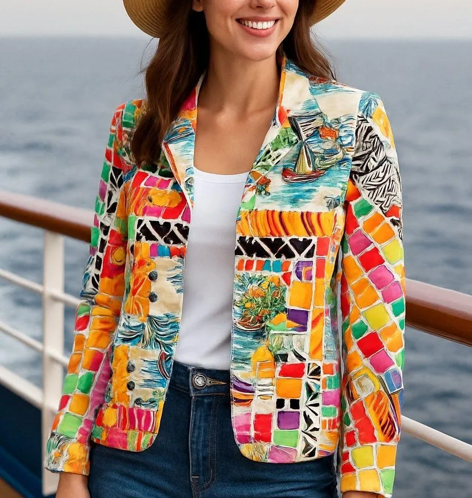 Channel classic resort style with this vintage-inspired Harvé Benard by Benard Holtzman blazer — a true statement piece for your wardrobe. • Brand: Harvé Benard by Benard Holtzman • Size: 2P (Petite) • Color/Pattern: Multicolor patchwork with sailboats, pavilions, and coastal scenes • Fabric: 97% cotton / 3% spandex — light stretch • Care: Dry clean • Fit: Tailored, fully lined, three-button front, functional flap pockets • Measurements (approx): • Bust: 16.5” • Waist: 15.5” • Sleeve: 22.5” • Length: 22” • Original Retail: ~$180 This blazer feels like wearable art — the retro, gallery-ready look is perfect for fall transitions, vacation dinners, or creative office outfits. Style Ideas: • Pair with white jeans & sandals for coastal chic • Layer over a shift dress for a bold office statement • Style open with a white tee & denim for effortless weekend vibes Ships fast from a smoke-free home. #Vintage #VintageInspired #VintageVibes #ColorfulCloset #NauticalChic #CoastalVibes #VacationReady #Resort #RetroVibes #TrendyStyle #FallOutfit #FallOutfitInspo #TimelessStyle #ClassicWardrobe #BusinessCasual #OfficeCore #ChicBasics #EffortlessOutfits #WeekendWear #WeekendStyle #RomanticTop #RomanticChic #Whimsical #Whimsigoth #SlowFashion #QuietLuxury #LuxuryDetails #StatementJacket #ArtToWear (121)