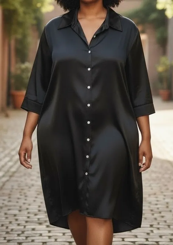Harve Benard Tunic Shirt Dress Womens Size 16W Black 100% Silk Button Relaxed Excellent pre-owned condition Full button front Collared 3/4 sleeves Side slits Tunic length 100% Silk Dry clean only AI Generated photos for styling purposes pit to pit 24" sleeve 19.5" length 40" minimalist, comfort, chic, classic, lightweight, breathable, party, career, versatile, travel