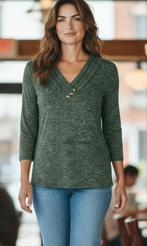 Hastings & Smith blouse PL pleat crossover V neck 3/4 sleeve olive green NEW Size L - $19 New With Tags - From Baldi