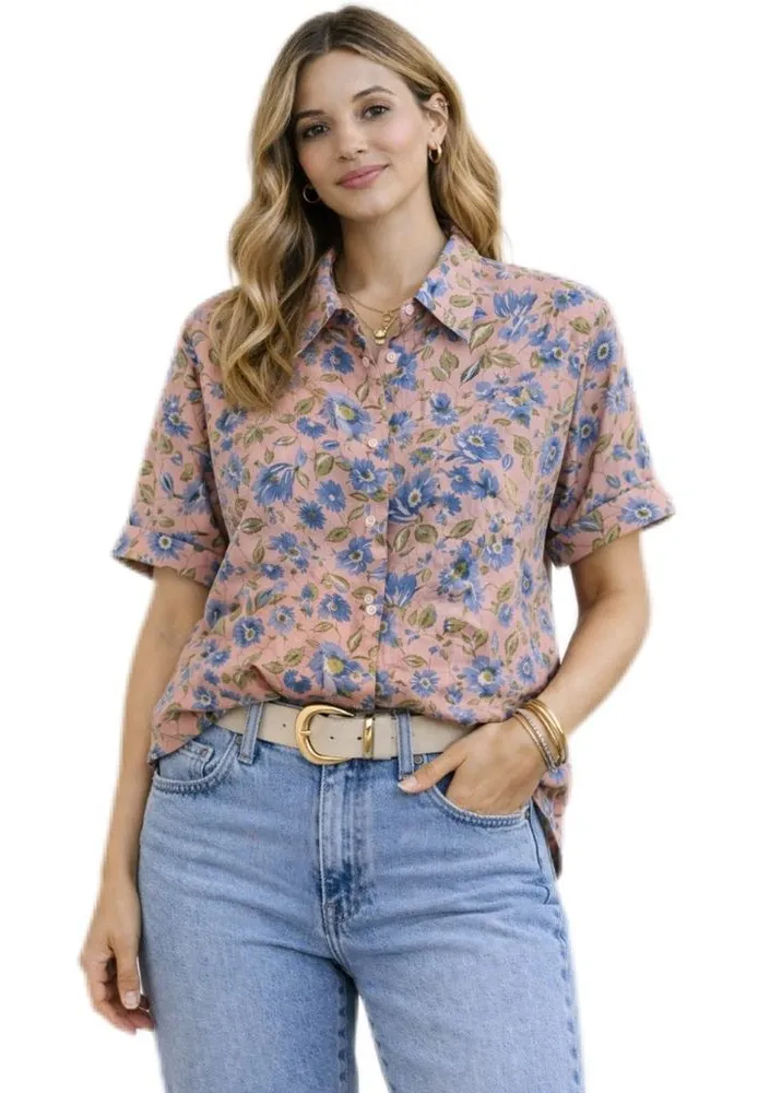 Elevate your casual wardrobe with this stylish button-down shirt from Hasting & Smith, featuring a delightful mix of pink, green and blue hues. Crafted from lightweight fabric, it offers a comfortable fit perfect for everyday wear. The classic design and beautiful colors make it a versatile choice for any casual occasion. This shirt is in excellent preowned condition with no flaws. Maximalist, Casual, Floral, Business Casual, Summer, Feminine, Garden Girl