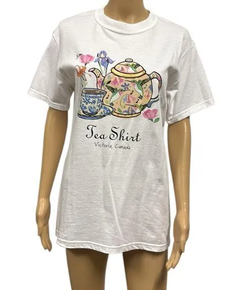 Questions? Leave a comment below! New with tag! Hatley Tea Shirt White 100% Cotton Graphic Short Sleeve Tee Victoria Canada Women’s Small Very good condition as seen in pictures! Last pic shows a very light spot (new with tags so I did not wash to get it out) Please be sure to refer to pictures for style and condition and also check following measurements against something you currently own as most brands, styles or years of clothing size differently. (Example: vintage items were made smaller) Measurements are flat across front only! Chest (underarm to underarm) 18.5” Waist 18” Hips 18.5” Length (underarm to hem) 17.5” Sleeves (underarm to cuff) 4.25” Shoulder to hem 28”