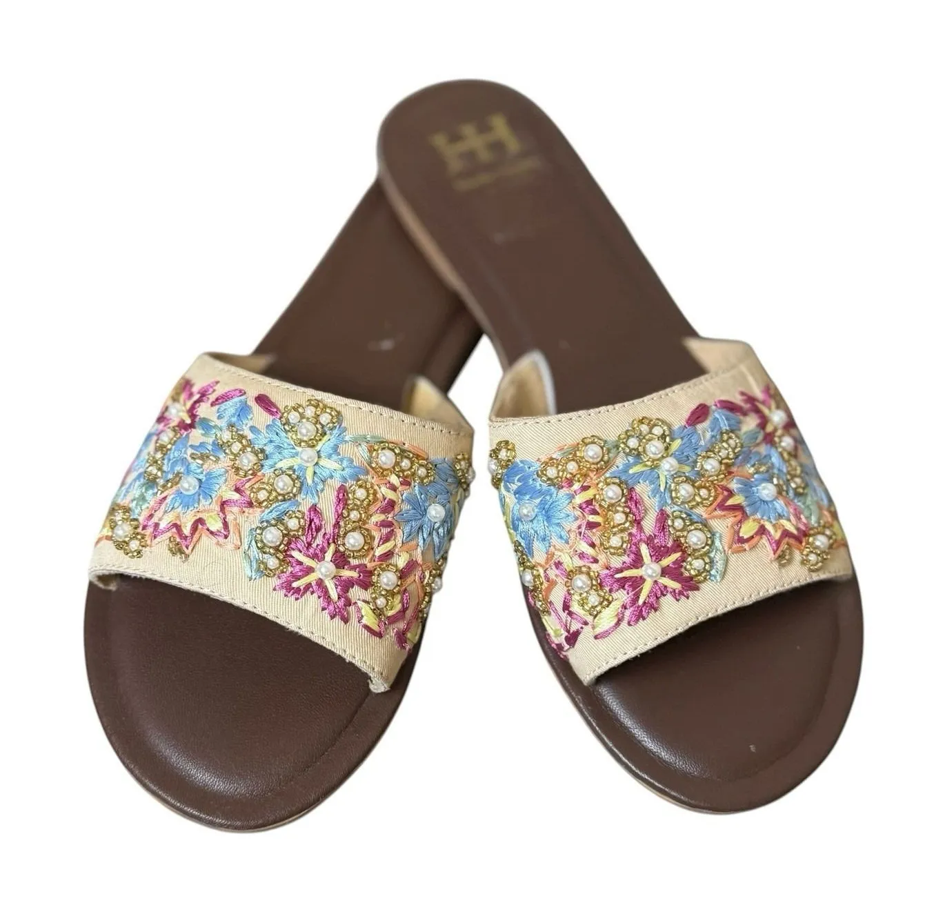 Excellent Pre-Owned Condition (see pics for details) Features: •Style Profile: Haute Hippie Cream Embroidered Embellished Womens Flat Sandals 9.5 Fits Small •Flaws: Slight wear on the bottom soles Size: 9.5 fits small (more like an 8.5) Color: Cream Ivory Tags: Embroidered, Beaded, Embellished, Floral, Boho, Boho Chic, Bohemian, Hippie, Festival, Beach, Travel Smoke free home. I am happy to answer your questions and am open to reasonable offers! Super fast shipping: I ship out the next business day! Please note that all pre-owned items may have slight imperfections.