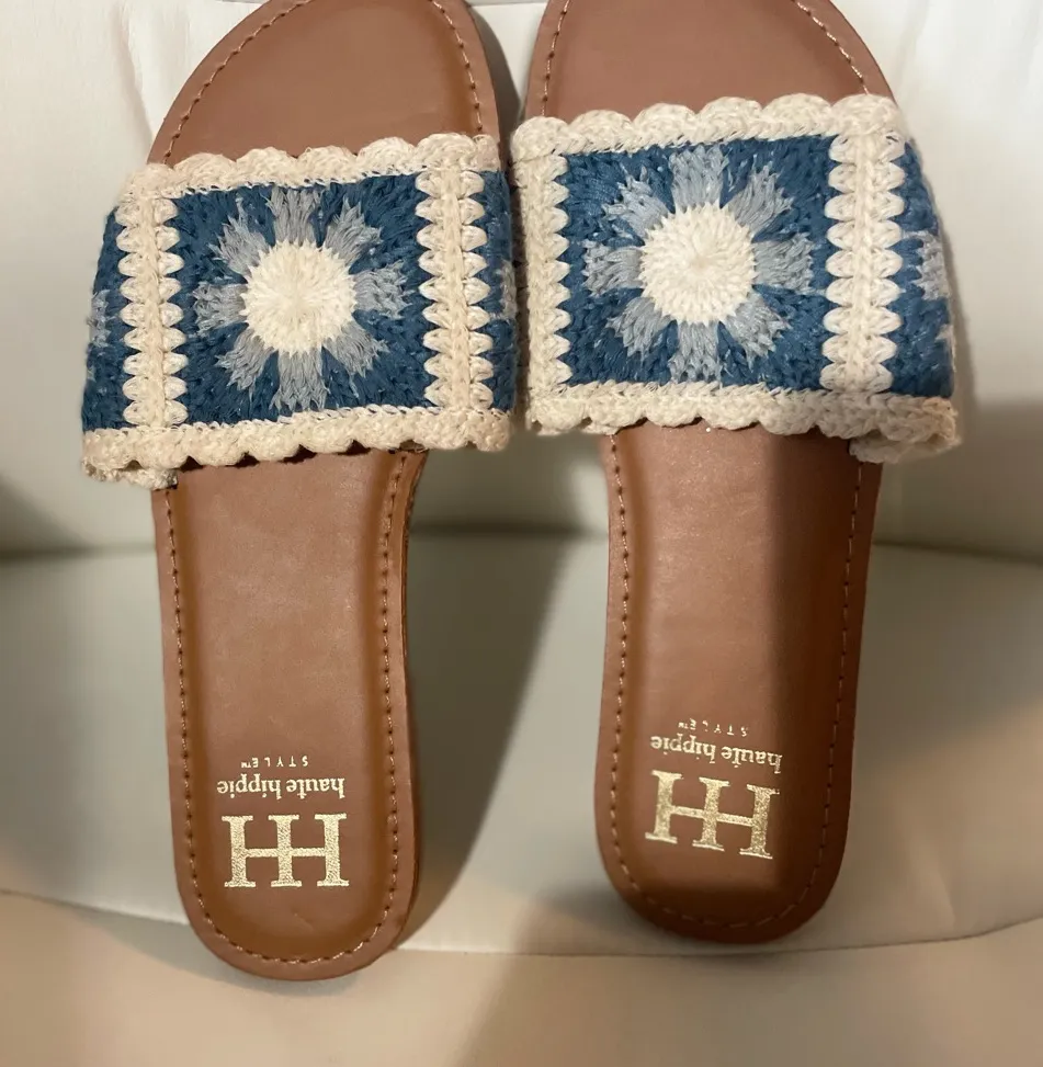 Haute Hippie Crochet Sandals in Blue and Cream size 7.5 - $31 - From Tracey