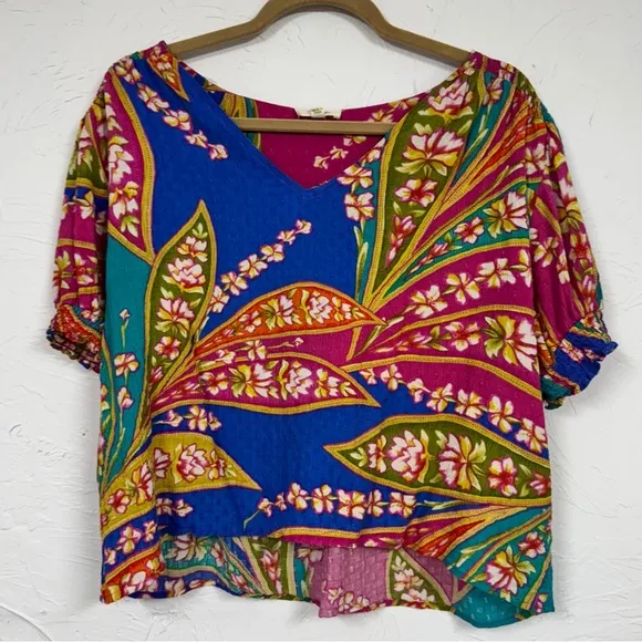 Haute Hippie Pink Blue Tropical Floral Print Blouse Womens XL Beachy Vacation - $27 - From Lisa