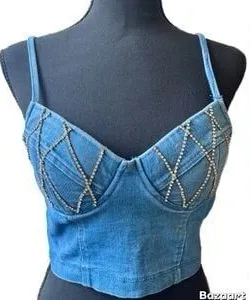 GW68_1250628 It's used, properly cleaned and in good condition Haute Monde Chambray Denim Rhinestone... Show more