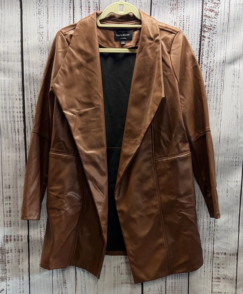 Haute Monde Los Angeles Brown Faux Leather Open Front Jacket Coat Size Large Pit to pit 21” Length... Show more