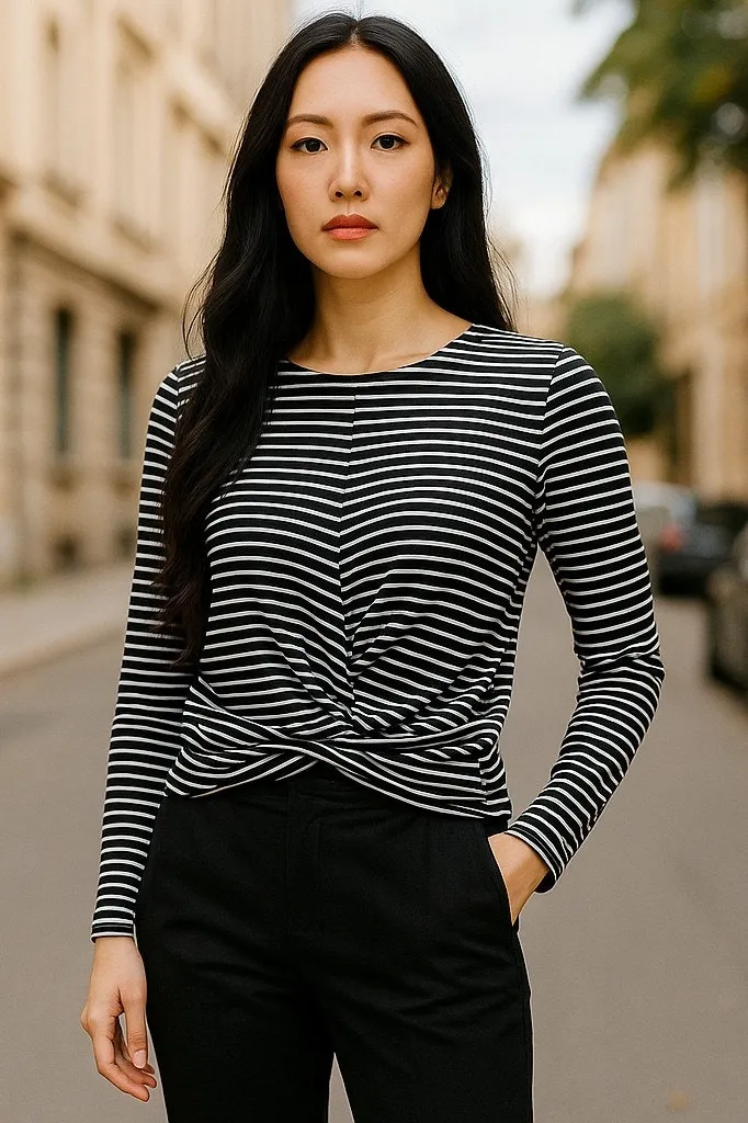 Haute Monde Womens Knit Top Sz S Black White Striped Crossover Bottom NEW GENERALLY SHIP SAME OR NE... Show more