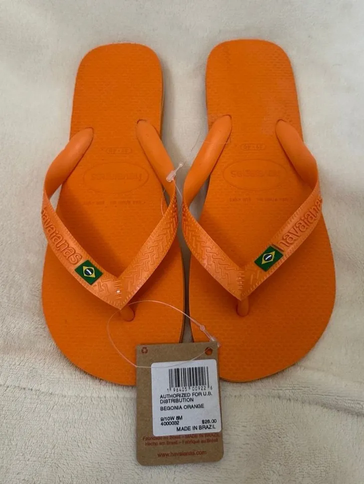Havaianas Flip Flops Unisex Original Brazil Rubber Sandals Beach Shoes 9/10W 8M Orange - $19 New With Tags - From Jose