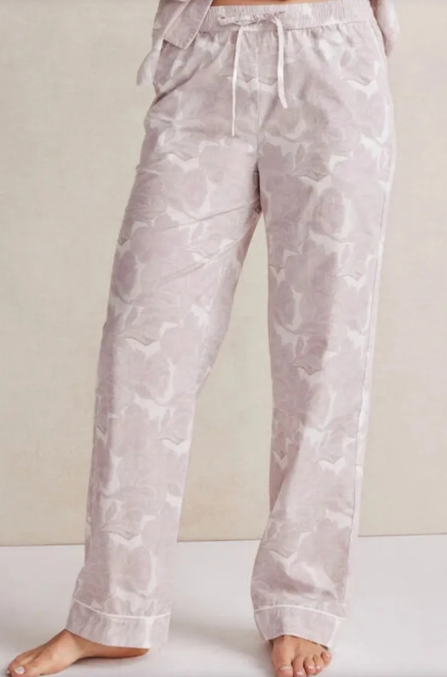 Experience effortless comfort with these floral pajama pants, featuring a beige and white floral pat... Show more