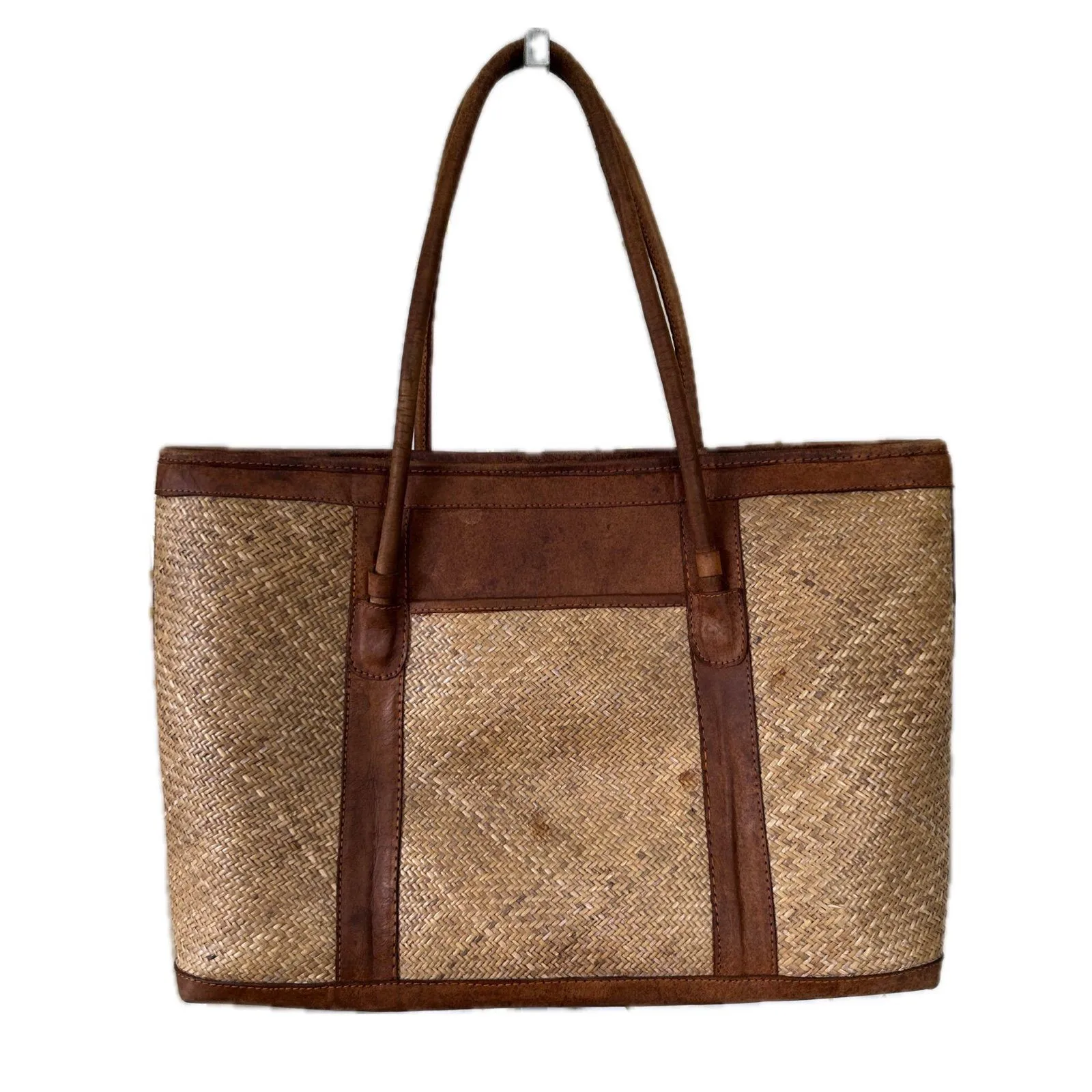 ID# It's used and in good condition. Unbranded but well made. See photos for imperfections Smell tested. No mildew or bad smells detected Hawaiian Inspired Genuine Leather Lauhala Rattan Like Weave Zipper Tote Bag Satin like lining. Inside zipper pocket. 2 outside deep external pockets Merrie Monarch Manuhealii Manaola Kamohoalii Kealopiko Kahulalea Wahine Toa Pomahina Hina Wehi Ola Hou Simply Sisters LexBreezy Hawaii’s Finest Sig Zane Fighting Eel Ava Sky Alohiwai Mahina Tribal Polynesian Indigenous Islander Color descriptions are suggestive and product color may vary due to photographic lighting sources or your monitor settings. I cannot guarantee the exact color shade APPROXIMATE Measurements with a deviation of +/- 0.5 inches 13.75" x 18.75" x 6.75" Bag drop: 10" Made in Indonesia 3lbs with packaging Please review pictures to see the specific condition of the item you are purchasing. Please ask questions. I want you to be happy with your purchase