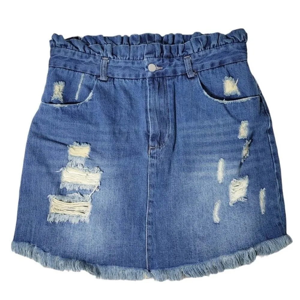 Hayden Los Angeles Denim Skirt Ruffle Waist Distressed Frayed Hem Womens Size: L Super Cute. Fact... Show more
