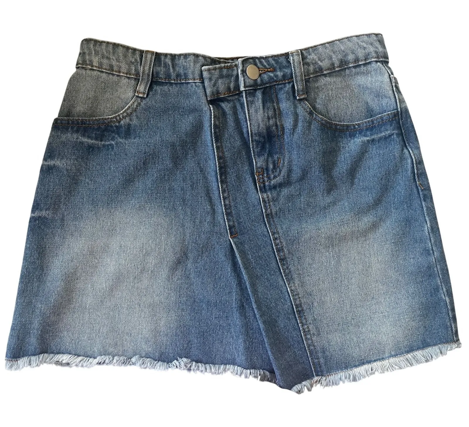 Keywords: denim skirt, mini skirt, frayed hem, light wash, casual skirt, womens skirt, Hayden Los Angeles, small, S, jean skirt, summer skirt, fashion skirt, distressed denim, classic skirt
