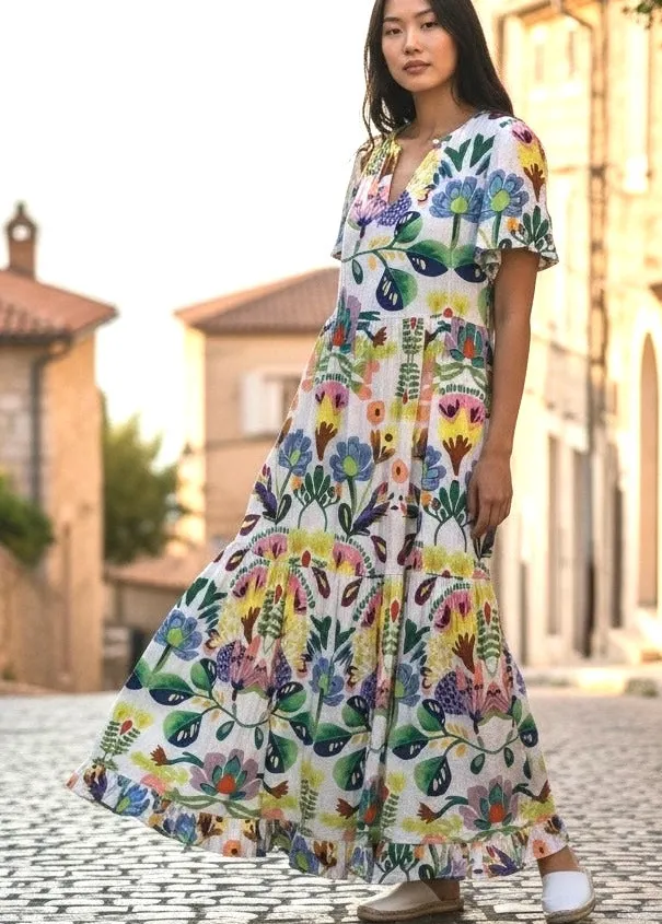 Short Flutter sleeves Ruffle Hem 2 Seam Pockets Gauze type with jersey soft lining Shoulders 16" Pit to Pit 23" Neck to Hem 52" Cottage Core Coquette Hippie Lagenlook Prairie Peasant Vintage Inspired Country Girl Farm Girl Used item in excellent condition, no flaws noted, see pics. Please check your measurements. Please double-check your shipping address before you send the payment.