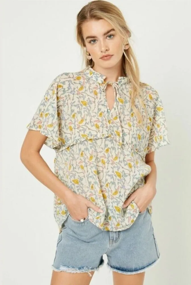 ✨Hayden TIE NECK SHORT SLEEVE TOP Good As Gold Top This flutter sleeve top features a stylish neck... Show more