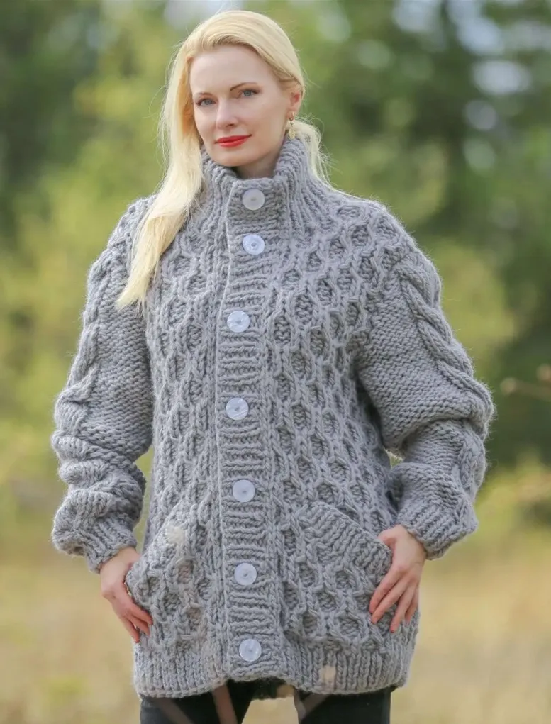 Hazel Taupe Chunky Knit Sweater honeycomb pattern sold At Anthropologie Gray Size L - $129 - From Tracie