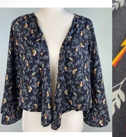 BRAND: GERI C. New York DESCRIPTION * New with tags (NWT) * Size large * This pairs perfectly with any outfit--wear it to work or casually to add a fun print to an outfit * Collar: V Neck * Material: 100% polyester * Lightweight * Bell Sleeves * Can be worn as a wrap top * Cropped length--falls above the waistline MEASUREMENTS: * Shoulder to hem: approx. 19"