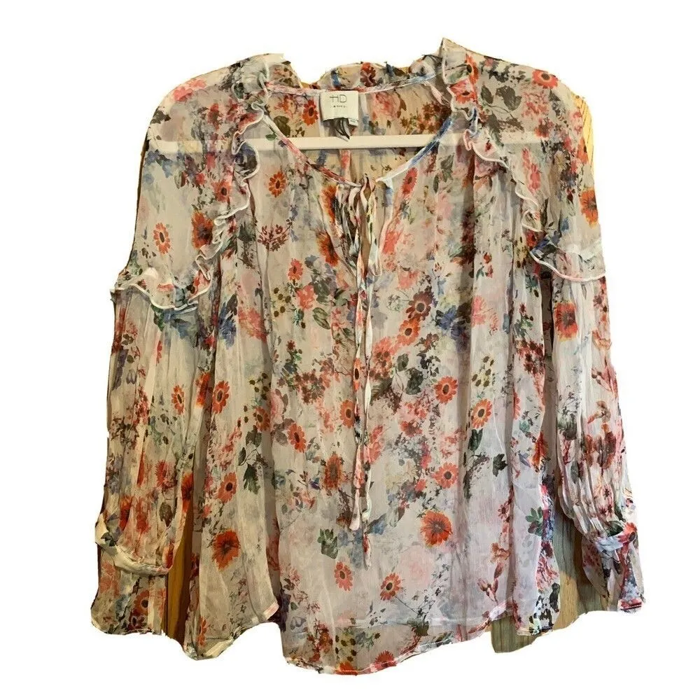 HD In Paris Anthropologie Womens Size Petite XS Multicolor Floral Sheer Silk Top - $20 - From SCFA