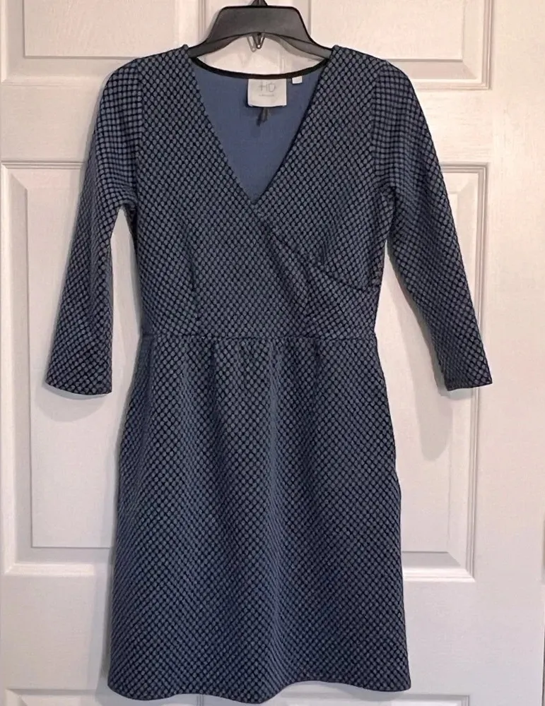 HD in Paris Textured Faux Wrap Anthropologie Dress - Size Small - Blue & Black - $19 - From Shaunda