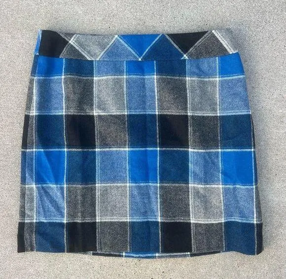 Talbots Wool Blend Blue Gray Black Buffalo Plaid Straight Skirt New With Tags NWT Size 16 VN4889 5... Show more