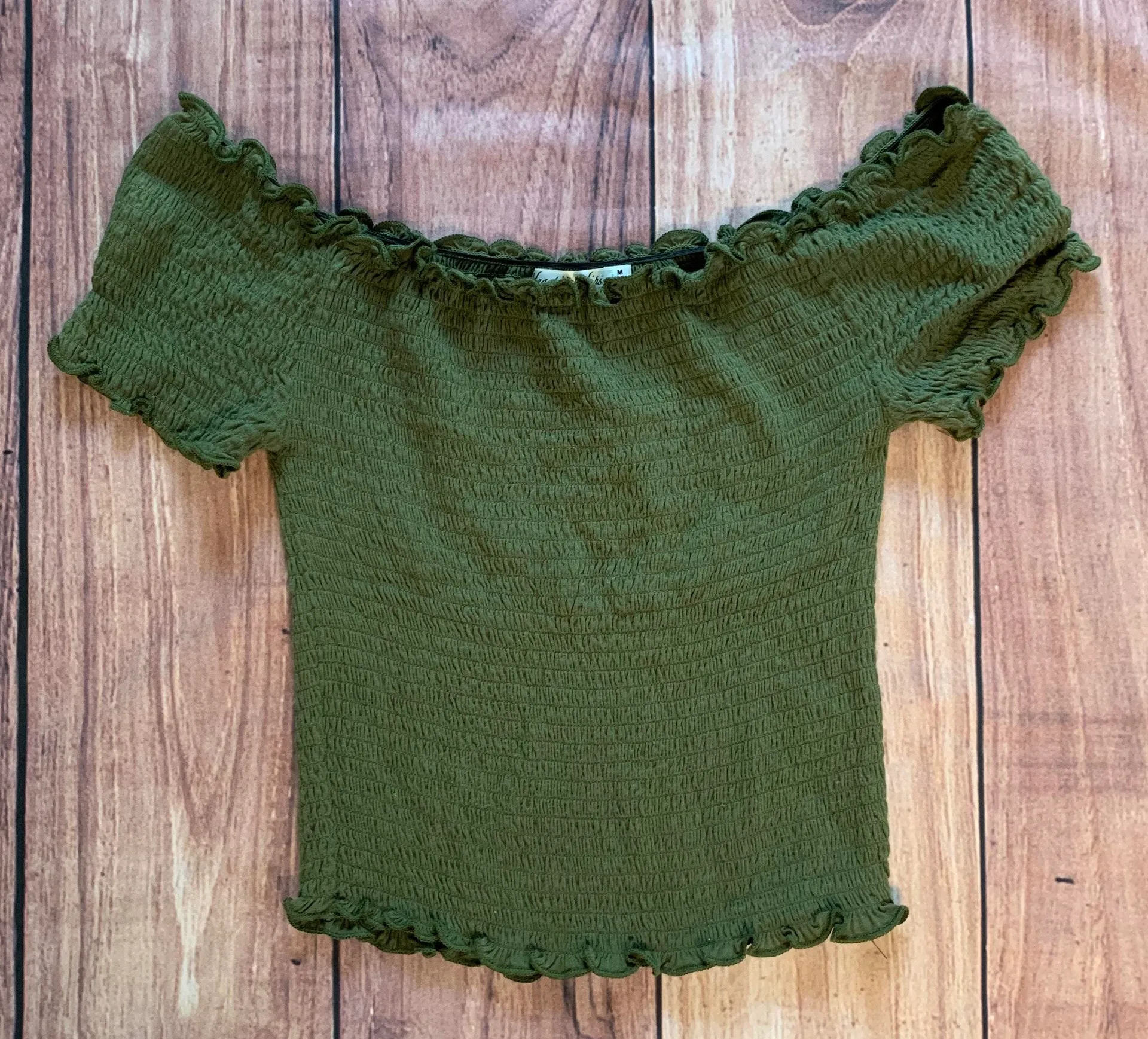 Item: Off the shoulder ruffled / smock crop top - stretch material Brand: Heart & Hips Condition: EU... Show more