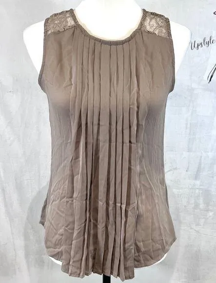 Mocha pleated lace detail top size XS Brown - $12 - From Upstyle