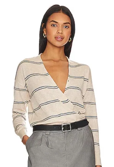 Heartloom Simona sweater with subtle blue stripes. V-neck style. Lightweight but still cozy for colder months. Purchased from revolve and worn once, in excellent condition. Concealed snap button detail at the bust.